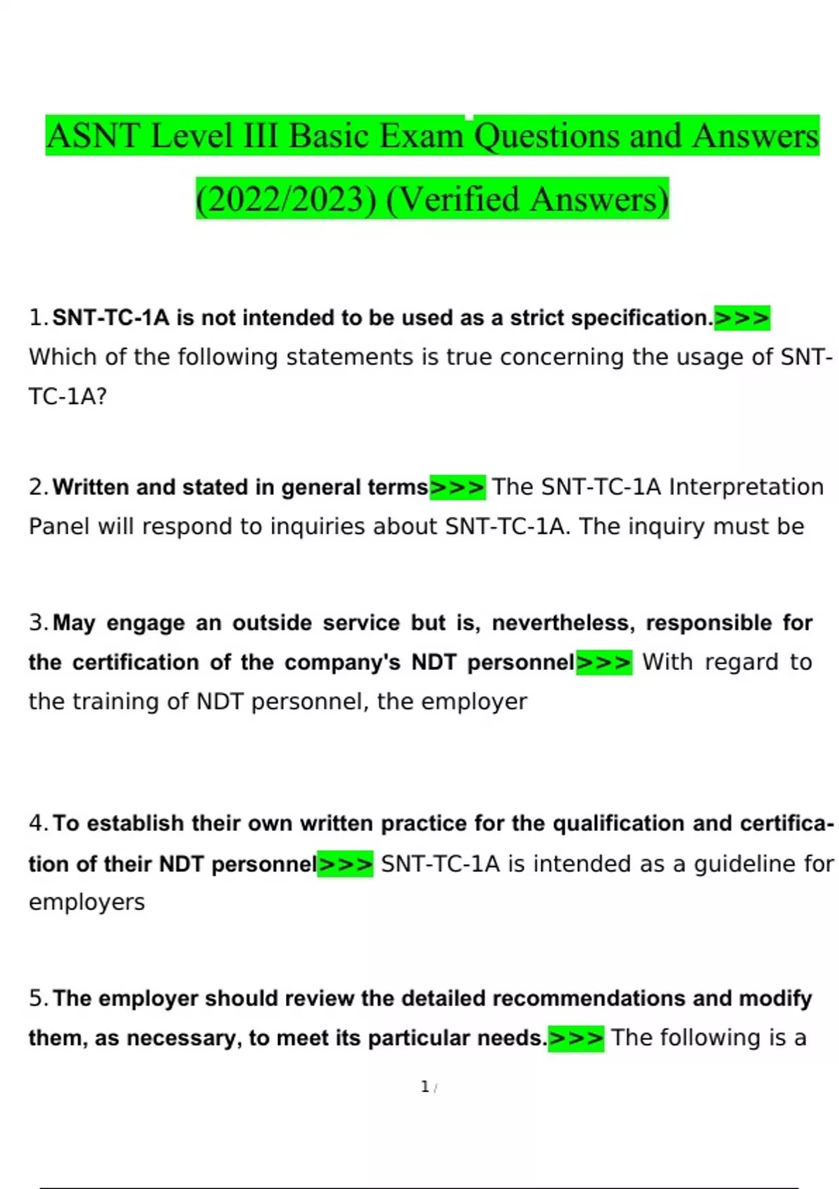 ASNT Level III Basic Exam Questions 2022/2023