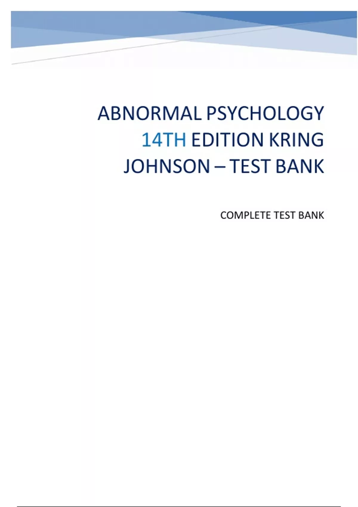ABNORMAL PSYCHOLOGY 14TH EDITION KRING JOHNSON