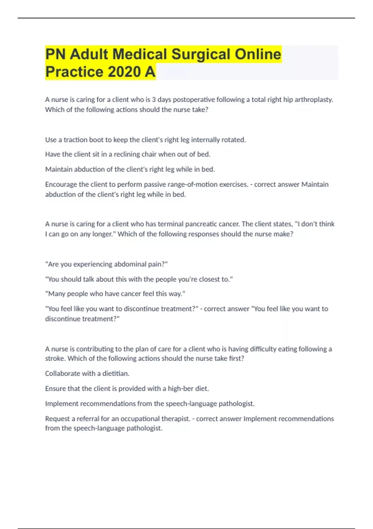 PN Adult Medical Surgical Online Practice 2020 A
