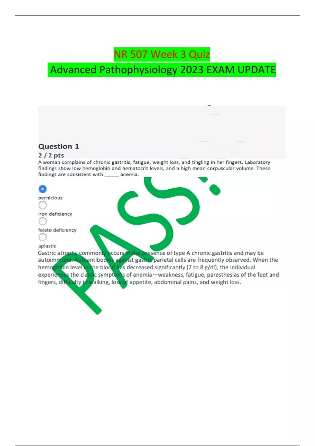 nr 507 week 3 quizpdf