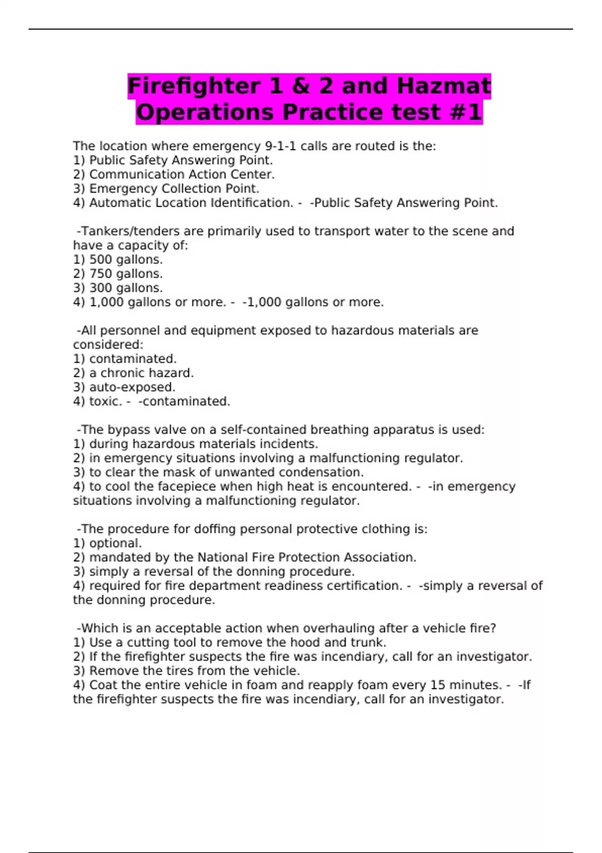 Firefighter 1 & 2 And Hazmat Operations Practice T