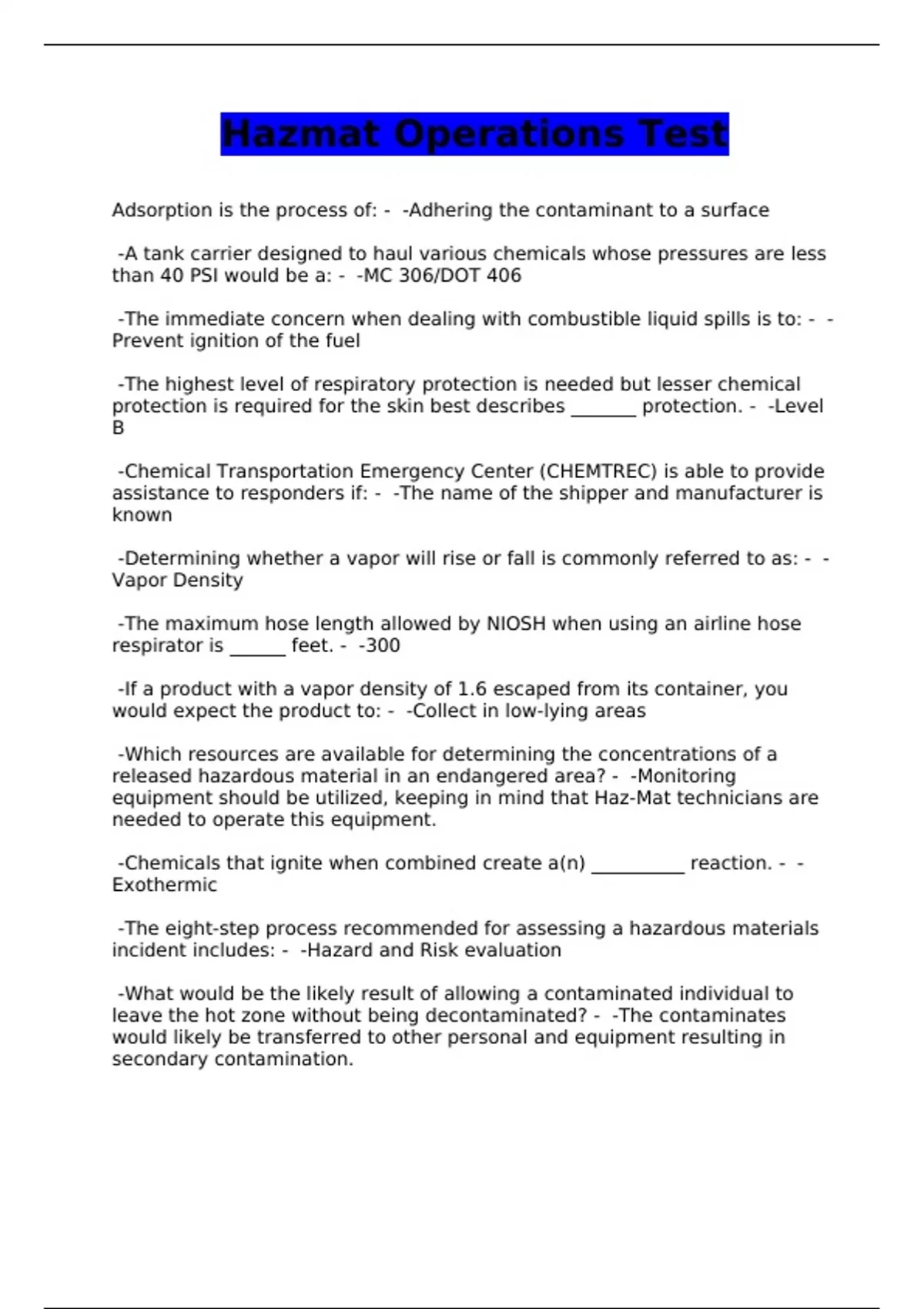 Hazmat Operations Test