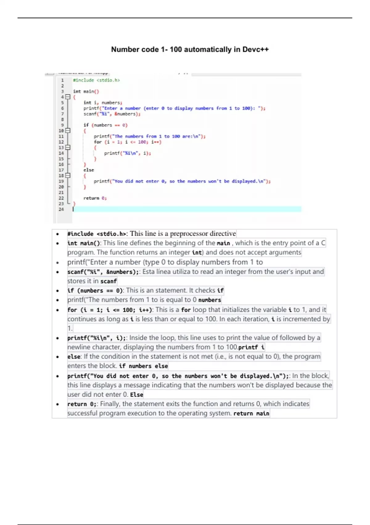 • printf("You did not enter 0, so the numbers won't be displayed.\n");: In the block,