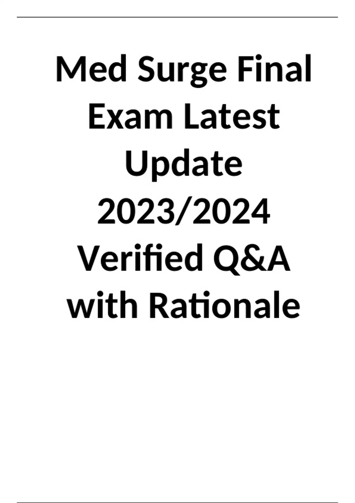 (solved) Med Surge Final Exam Latest Update 2023/2024 Verified Q&A with Rationale