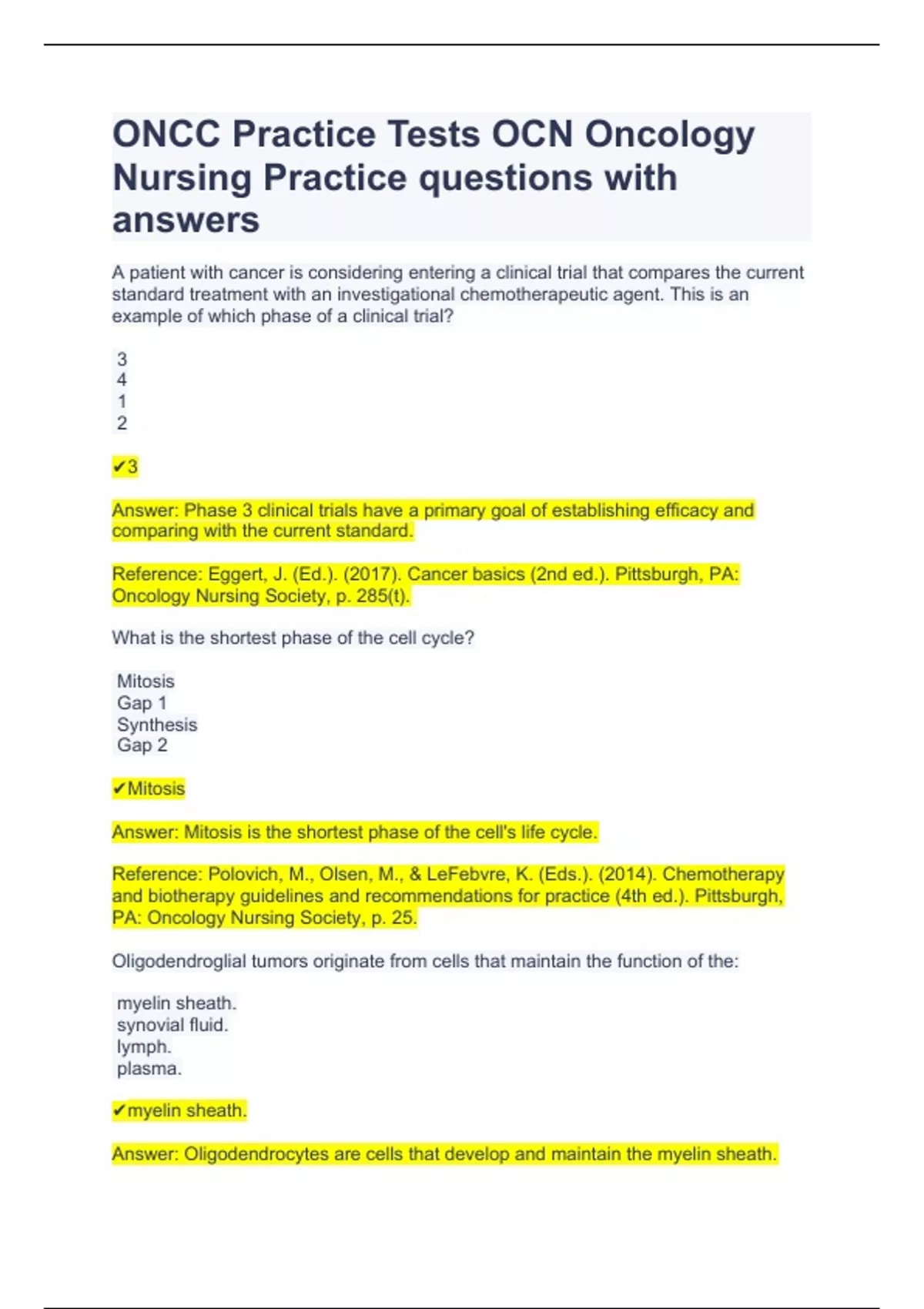 ONCC Practice Tests OCN Oncology Nursing Practice questions with answers