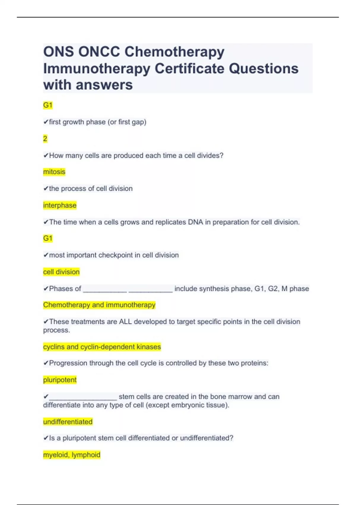 ONS ONCC Chemotherapy Immunotherapy Certificate Questions with answer1