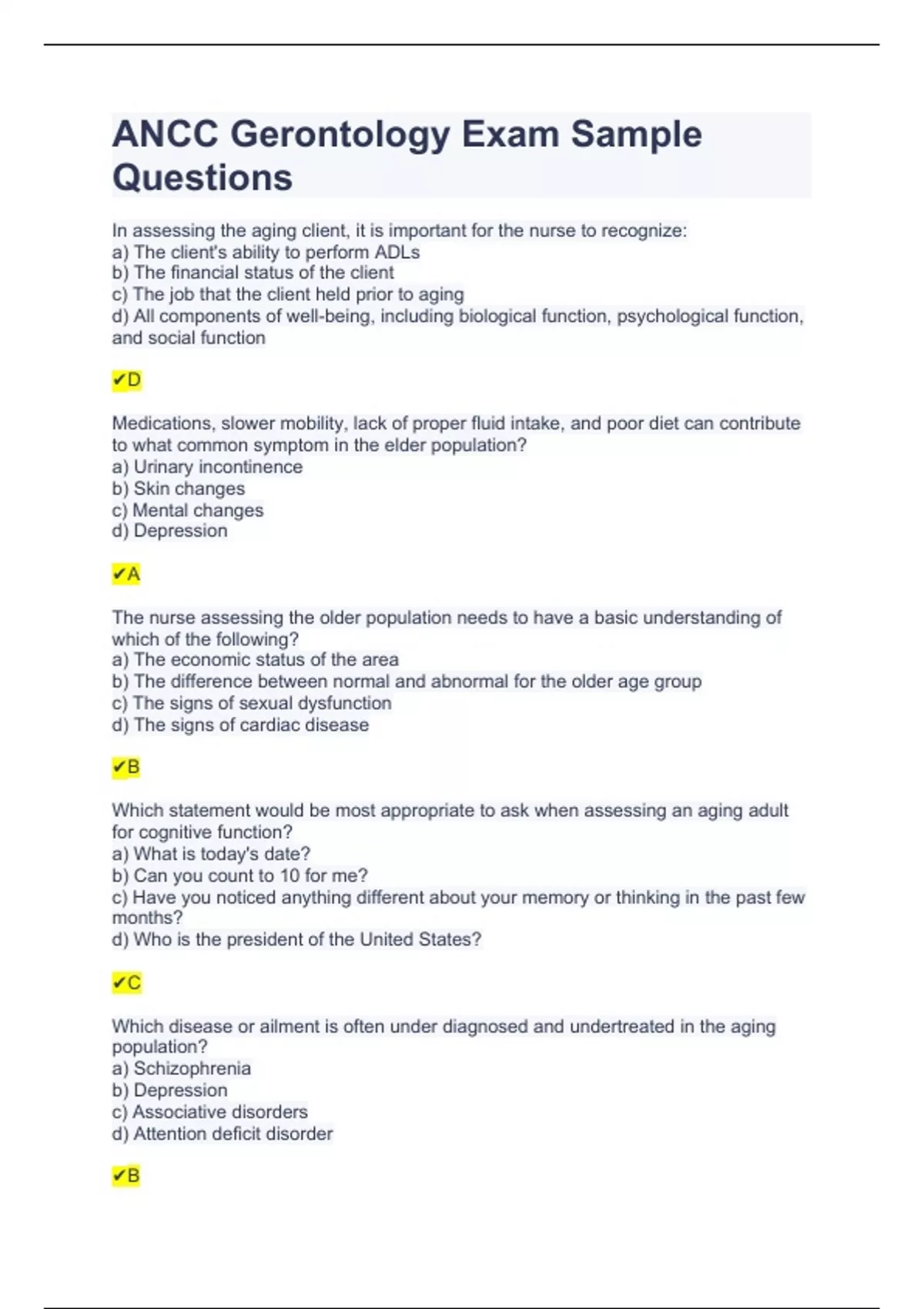 ANCC Gerontology Exam Sample Questions