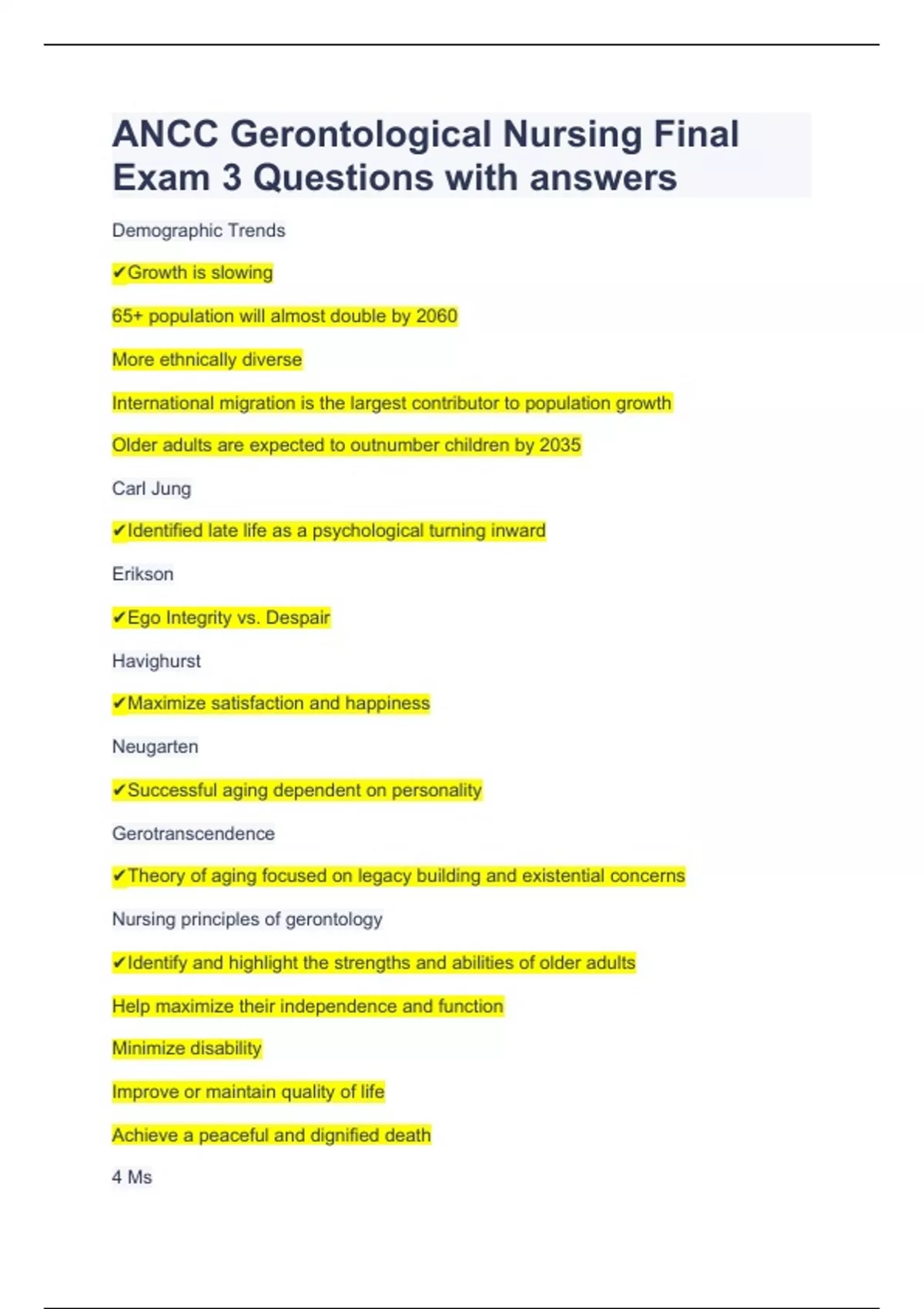 ANCC Gerontological Nursing Final Exam 3 Questions with answers