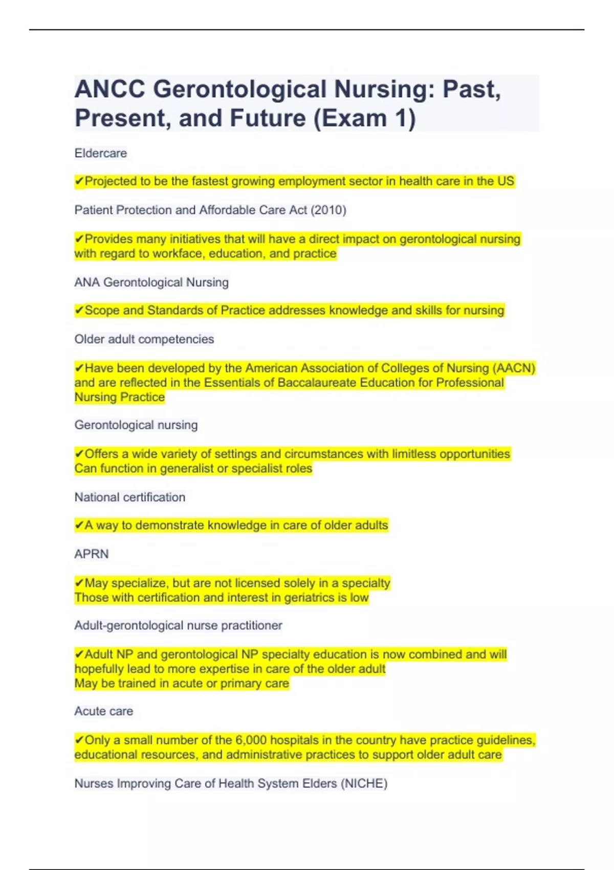 ANCC Gerontological Nursing Past, Present, and Future (Exam 1)