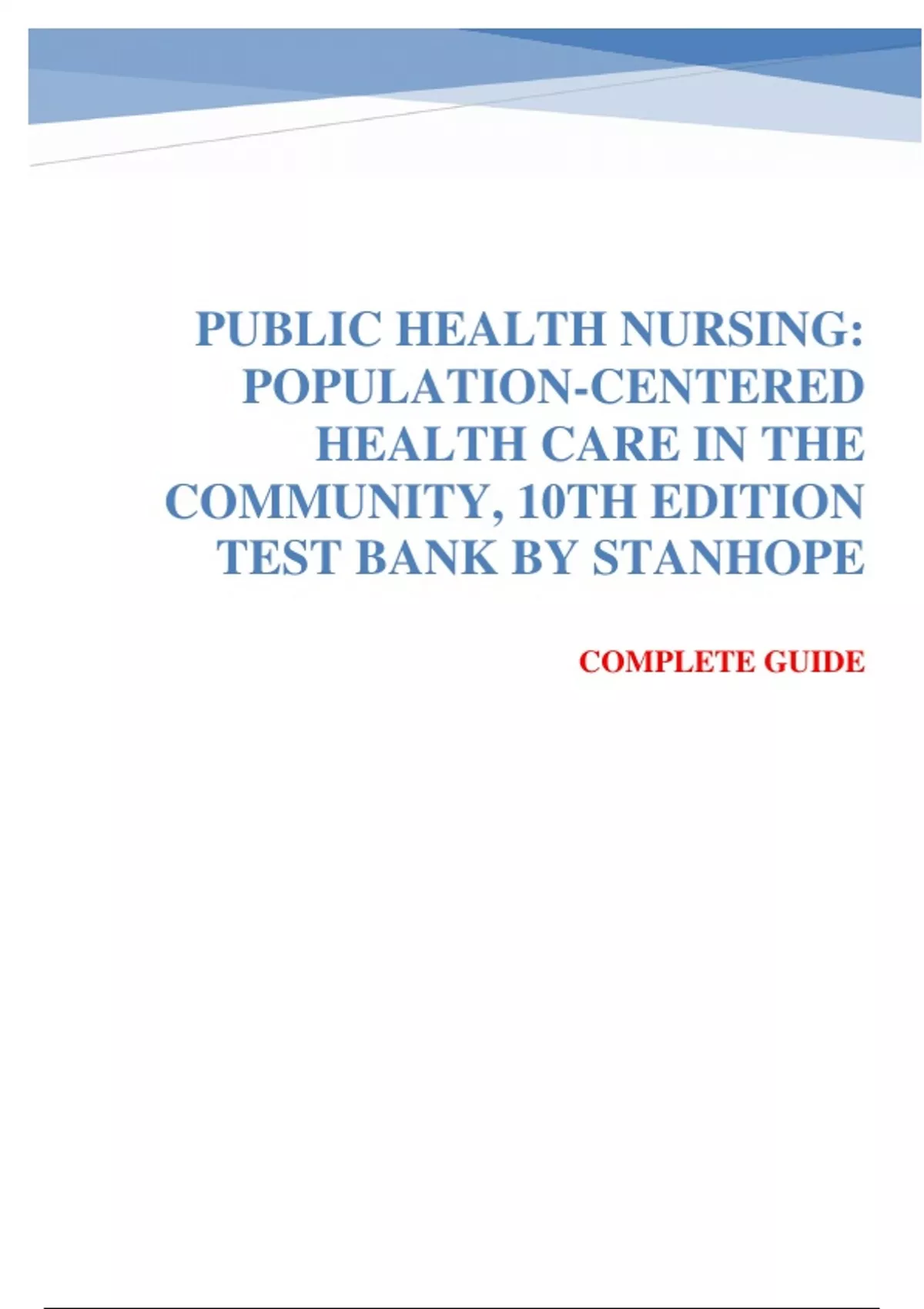 PUBLIC HEALTH NURSING: POPULATION-CENTERED HEALTH CARE IN THE COMMUNITY, 10TH EDITION TEST BANK BY STANHOPE COMPLETE GUIDE