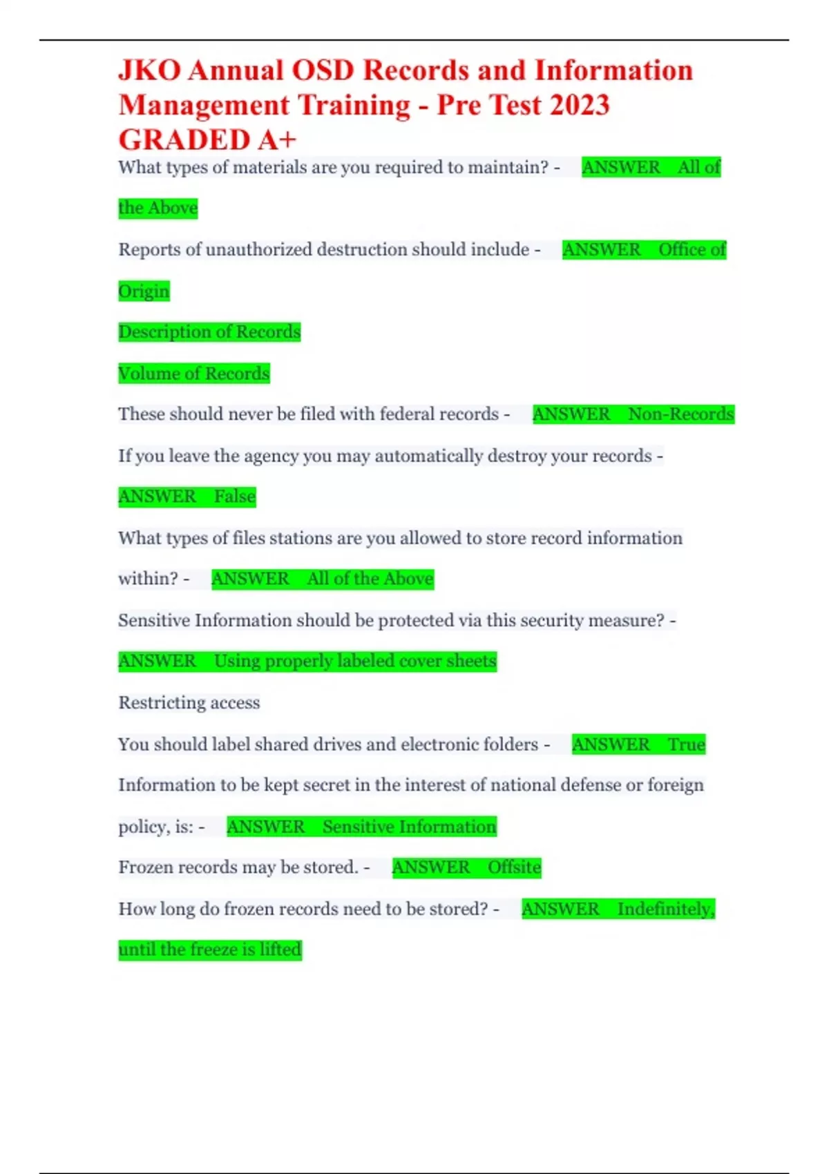 JKO Annual OSD Records and Information Management Training - Pre Test 2023