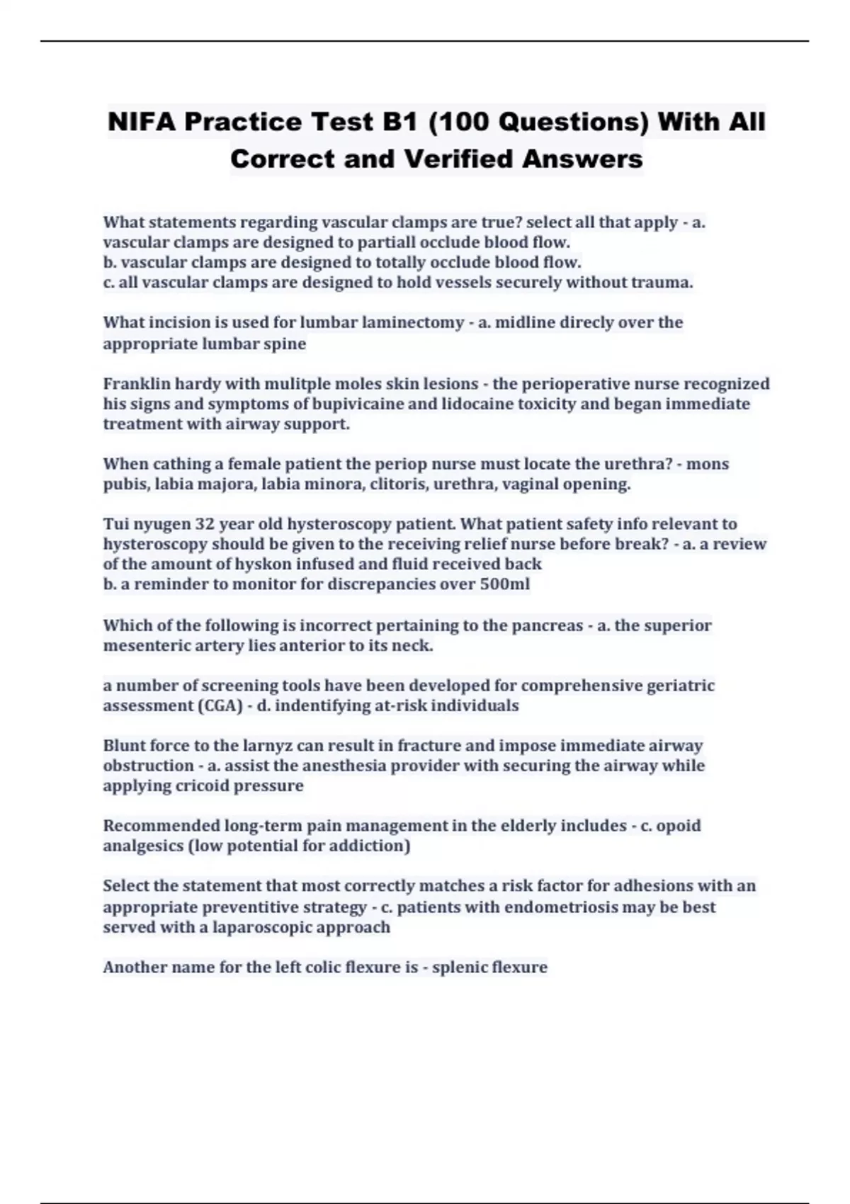 nifa practice test b1 100 questions with all cor