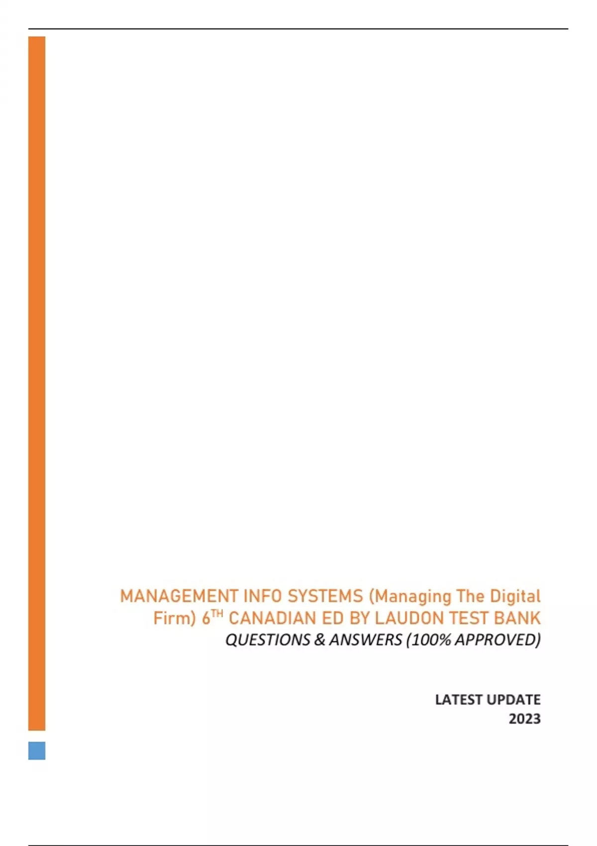MANAGEMENT INFO SYSTEMS (Managing The Digital Firm) 15TH ED TEST BANK | Q&A (RATED A+) | BEST UPDATE 2023