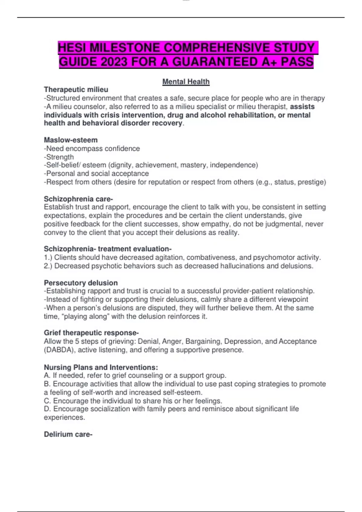 Summary HESI MILESTONE COMPREHENSIVE STUDY GUIDE 2023 FOR A GUARANTEED A+ PASS