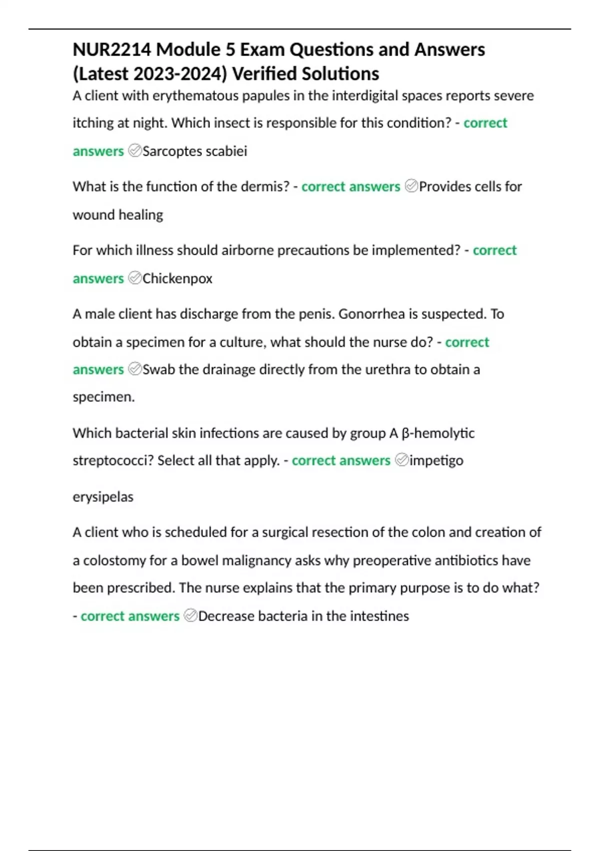 NUR2214 Module 5 Exam Questions and Answers (Latest ) Verified Solutions
