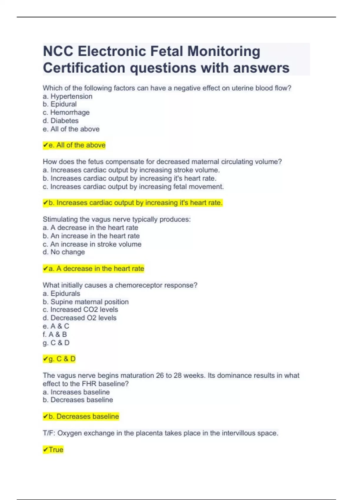 NCC Electronic Fetal Monitoring Certification questions with answers
