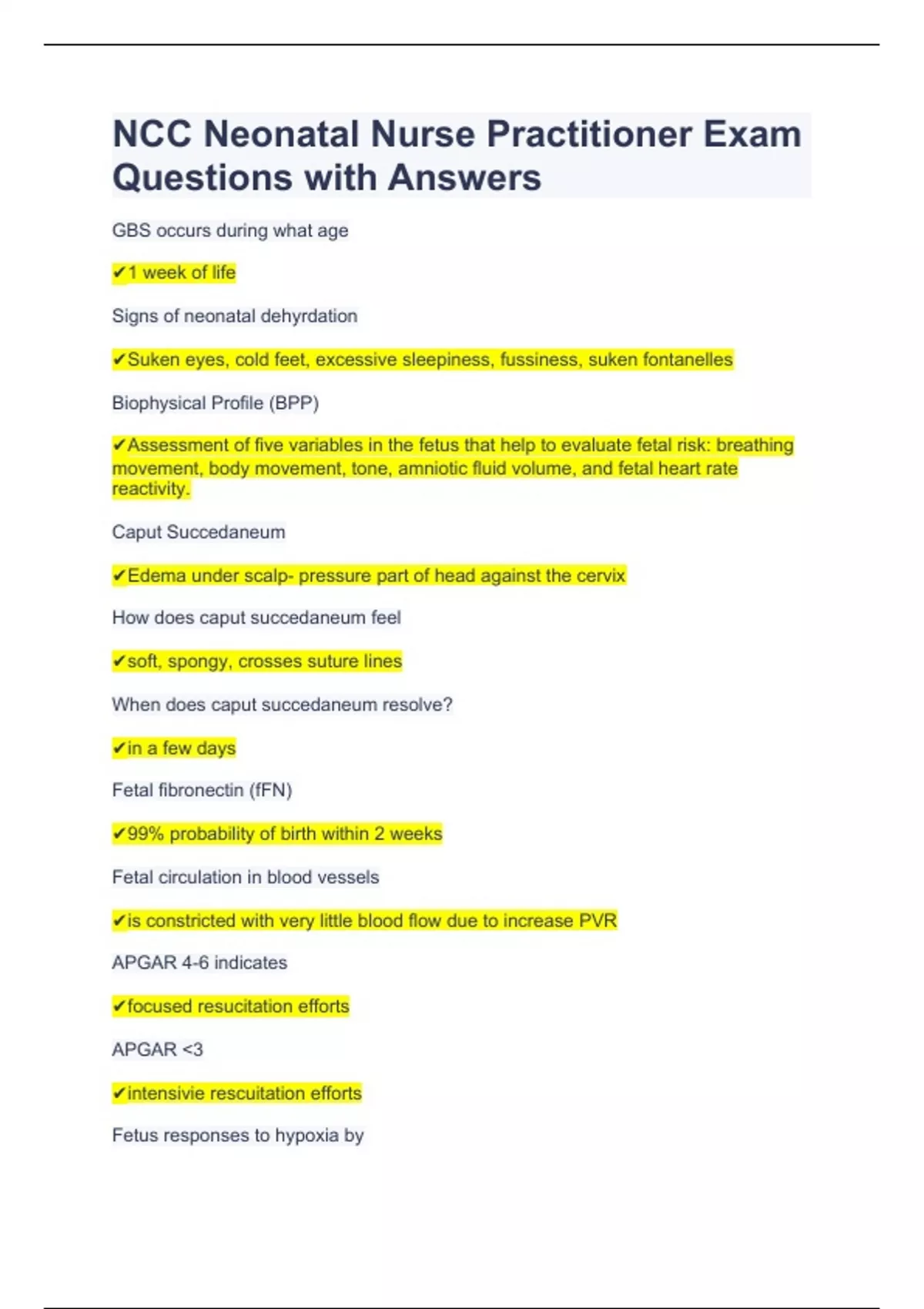 NCC Neonatal Nurse Practitioner Exam Questions with Answers