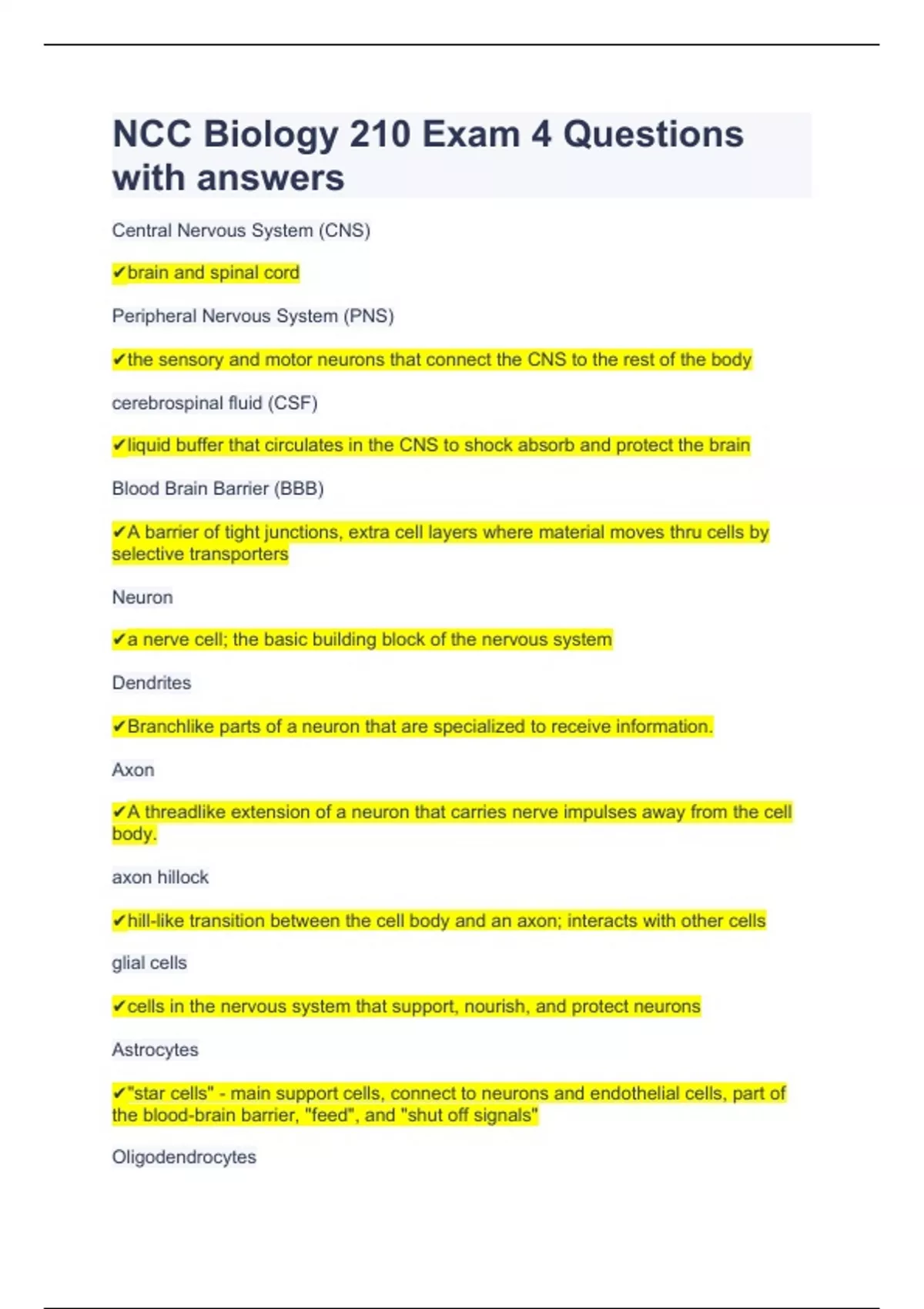 NCC Biology 210 Exam 4 Questions with answers