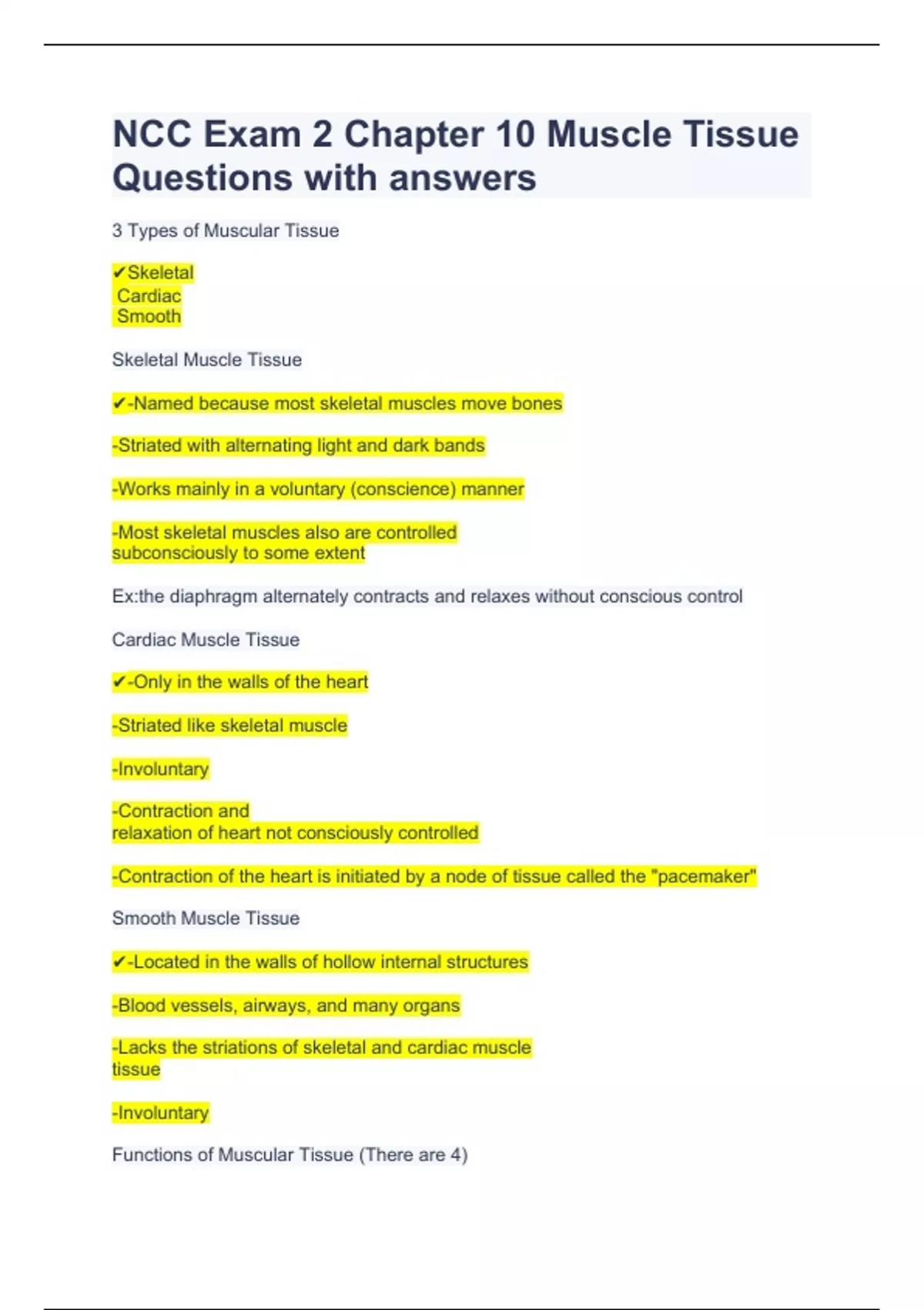 NCC Exam 2 Chapter 10 Muscle Tissue Questions with answers