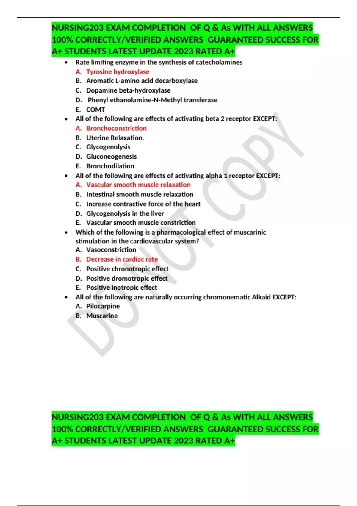 NURSING203 EXAM COMPLETION OF Q & As WITH ALL ANSWERS 100% CORRECTLY/VERIFIED ANSWERS GUARANTEED SUCCESS FOR A+ STUDENTS LATEST UPDATE 2023 RATED A+