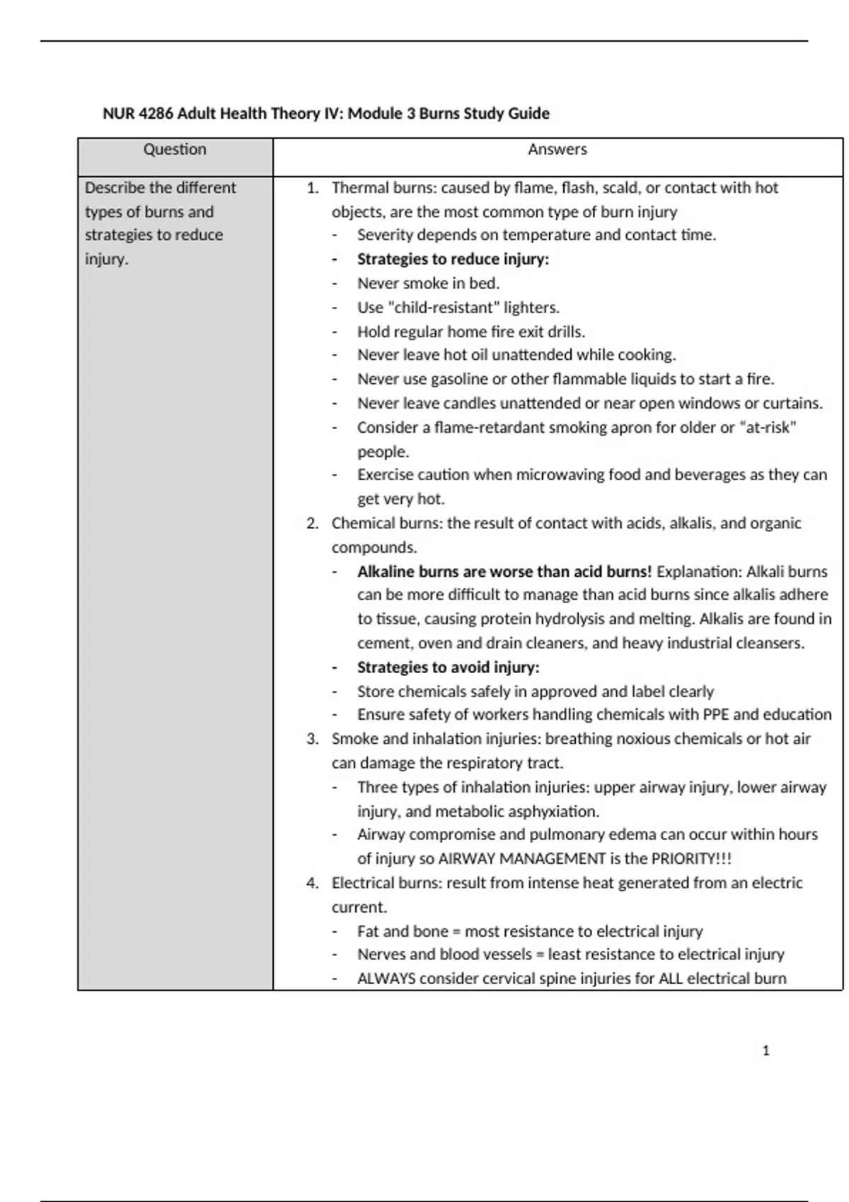 NUR 4286 Adult Health Theory IV: Module 3 Burns Study Guide