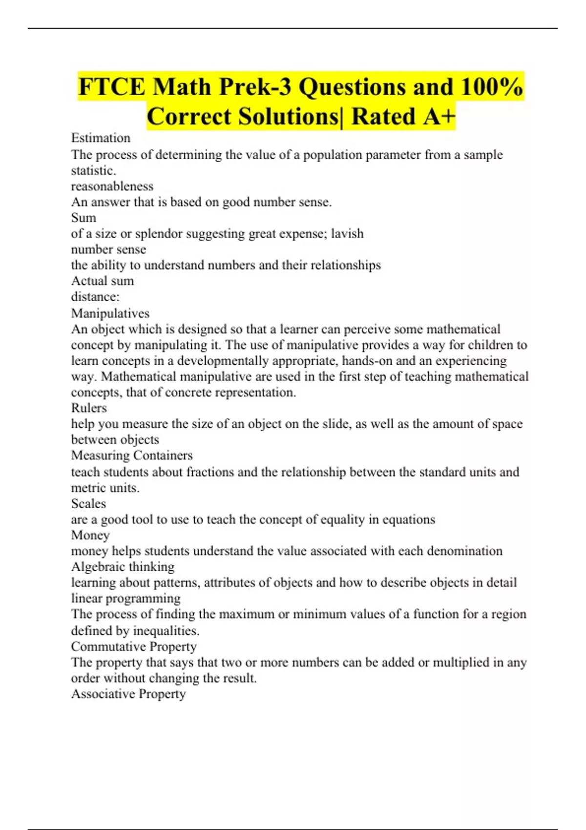 FTCE Math Prek-3 Questions and 100% Correct Solutions| Rated A+