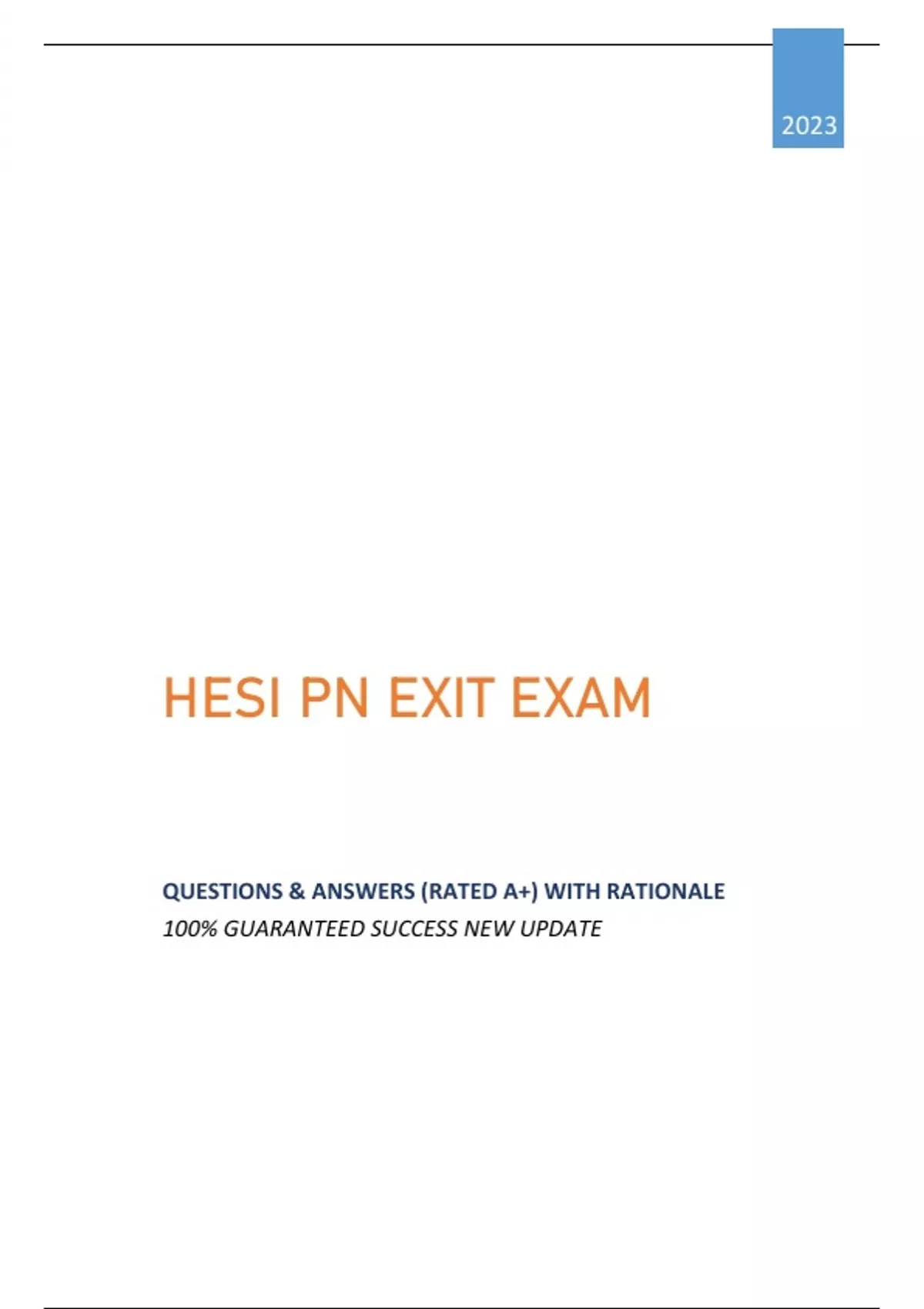 HESI PN EXIT EXAM QUESTIONS & ANSWERS (RATED A+) WITH RATIONALE 100% GUARANTEED SUCCESS NEW UPDATE