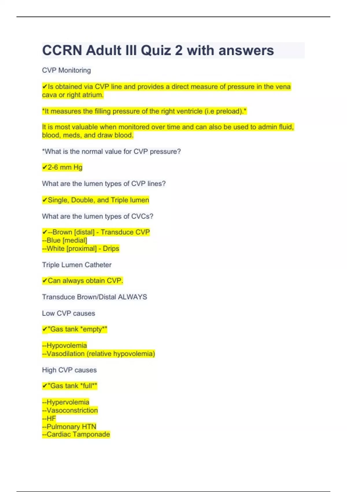 CCRN Adult III Quiz 2 with answers