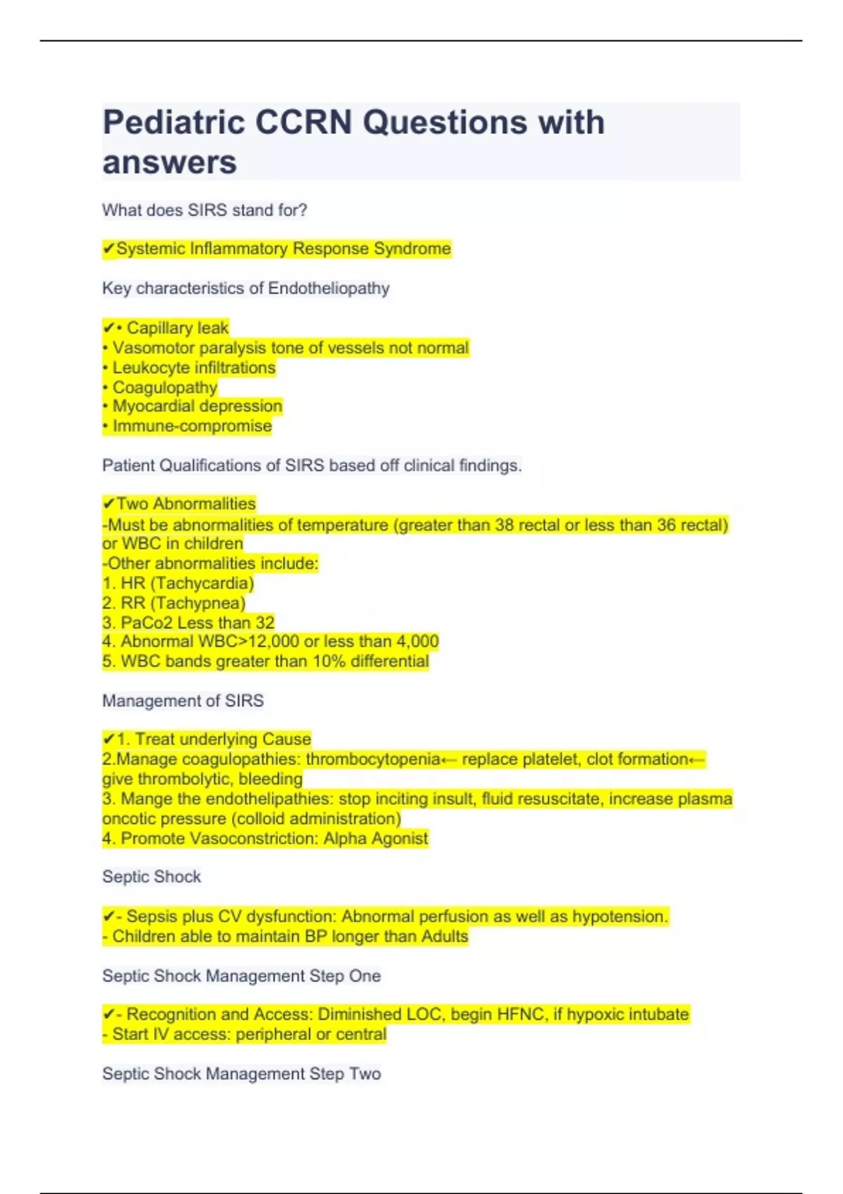pediatric ccrn questions with answers