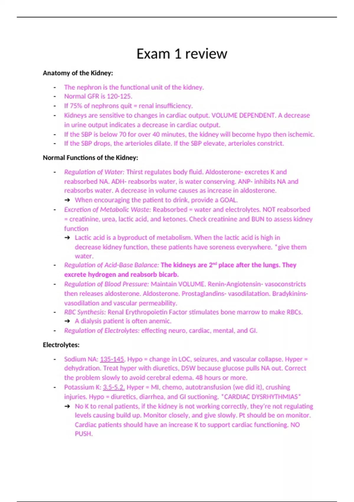 Nursing 265 Exam 1 review study guide