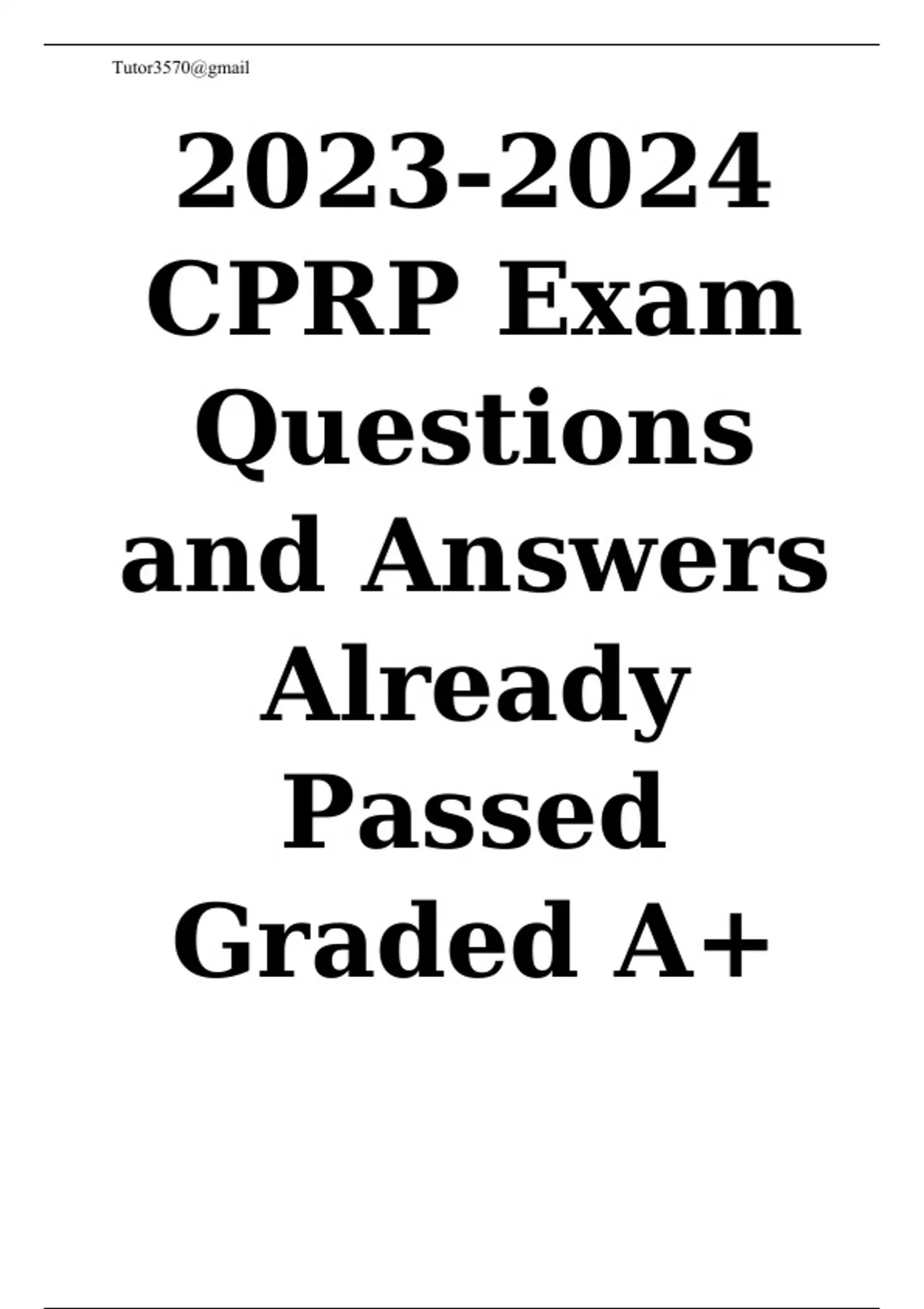 CPRP Exam Questions and Answers Already Passed Graded A+