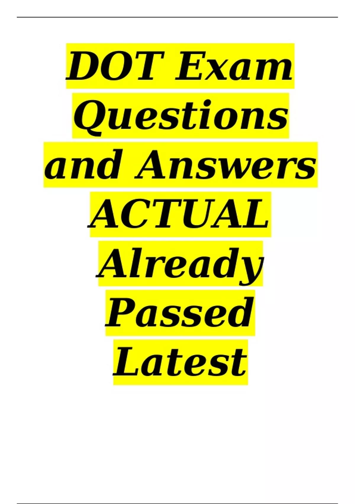 DOT Exam Questions and Answers ACTUAL Already Passed Latest Update 2023/2024