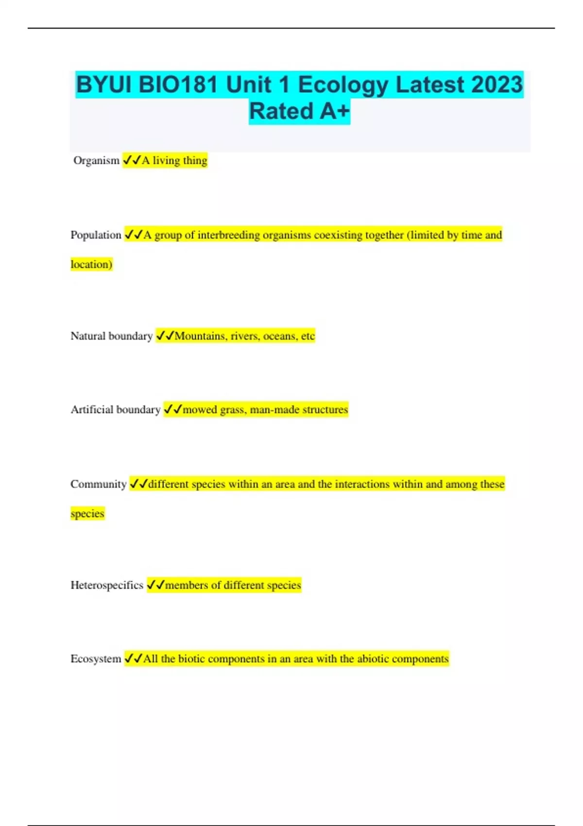 BYUI BIO181 Unit 1 Ecology Latest 2023 Rated A+