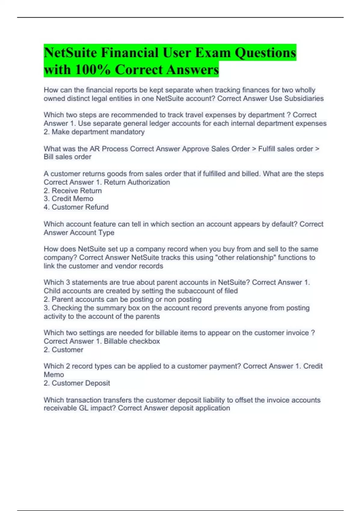 NetSuite Financial User Exam Questions with 100% Correct Answers