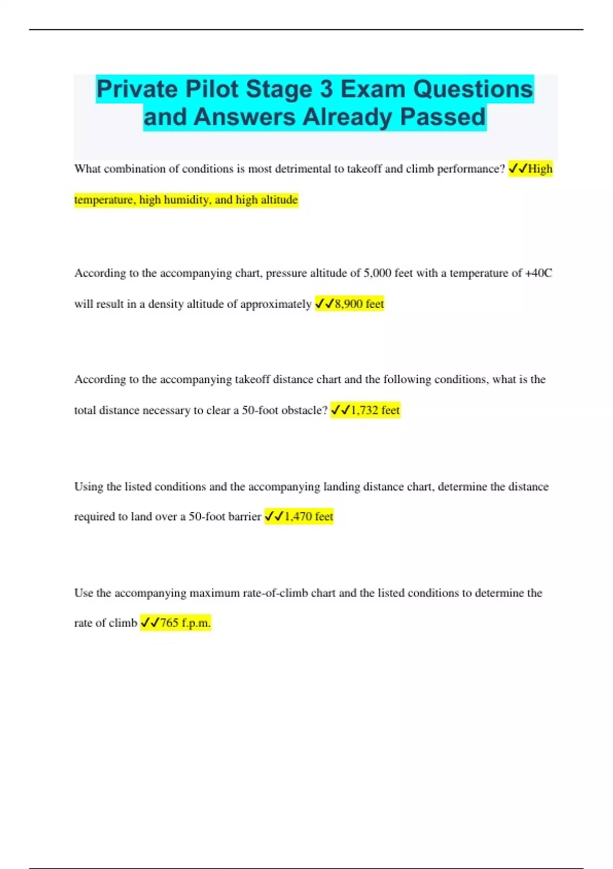 Private Pilot Stage 3 Exam Questions and Answers Already Passed