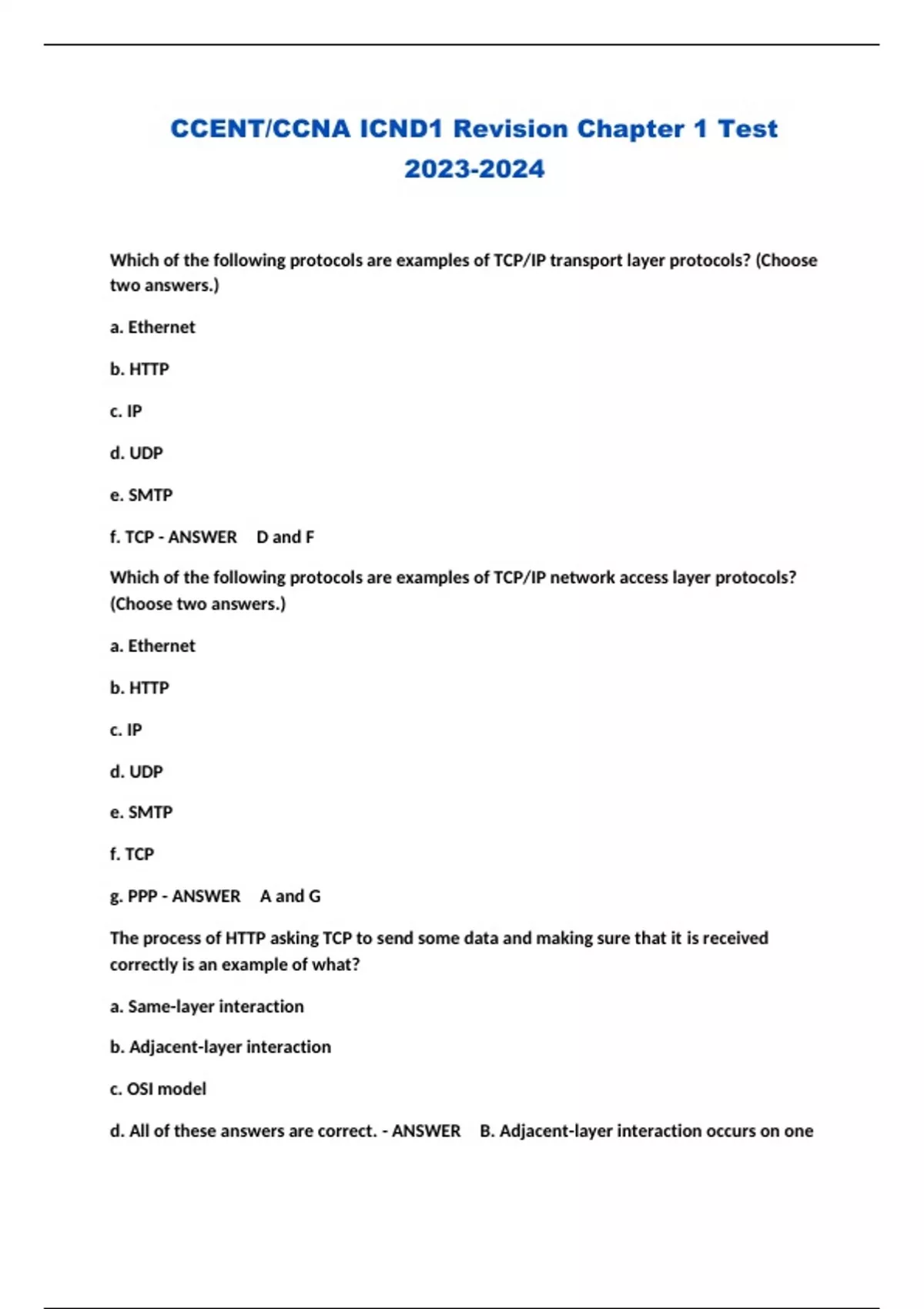 CCENT/CCNA ICND1 Revision Chapter 1 Test ...