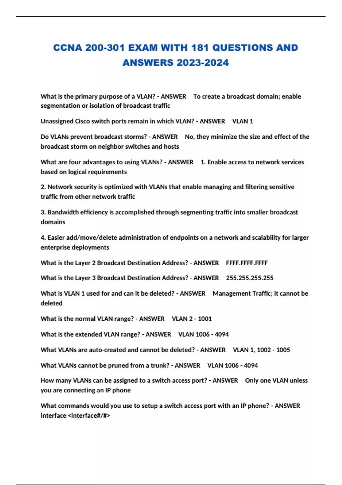 CCNA 200-301 EXAM WITH 181 QUESTIONS AND ANSWERS ...
