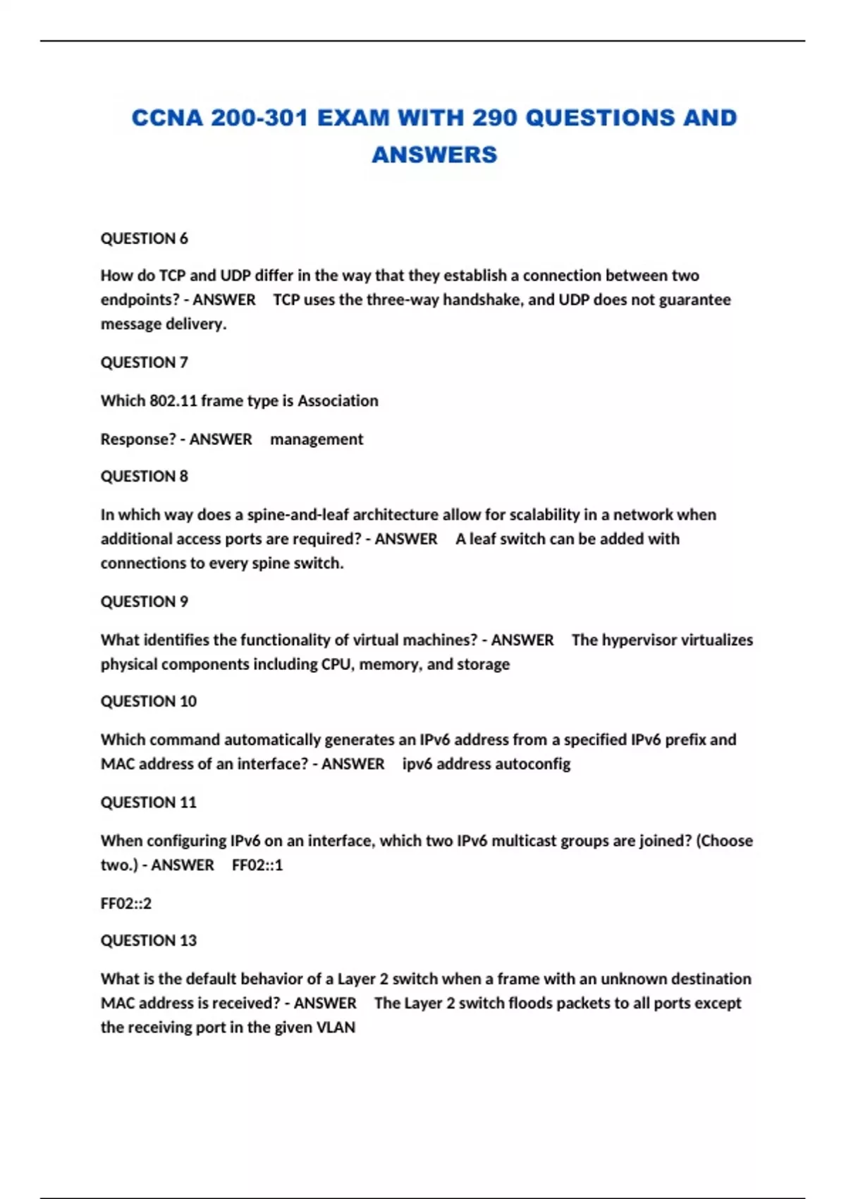 CCNA 200-301 EXAM WITH 290 QUESTIONS AND ANSWERS....