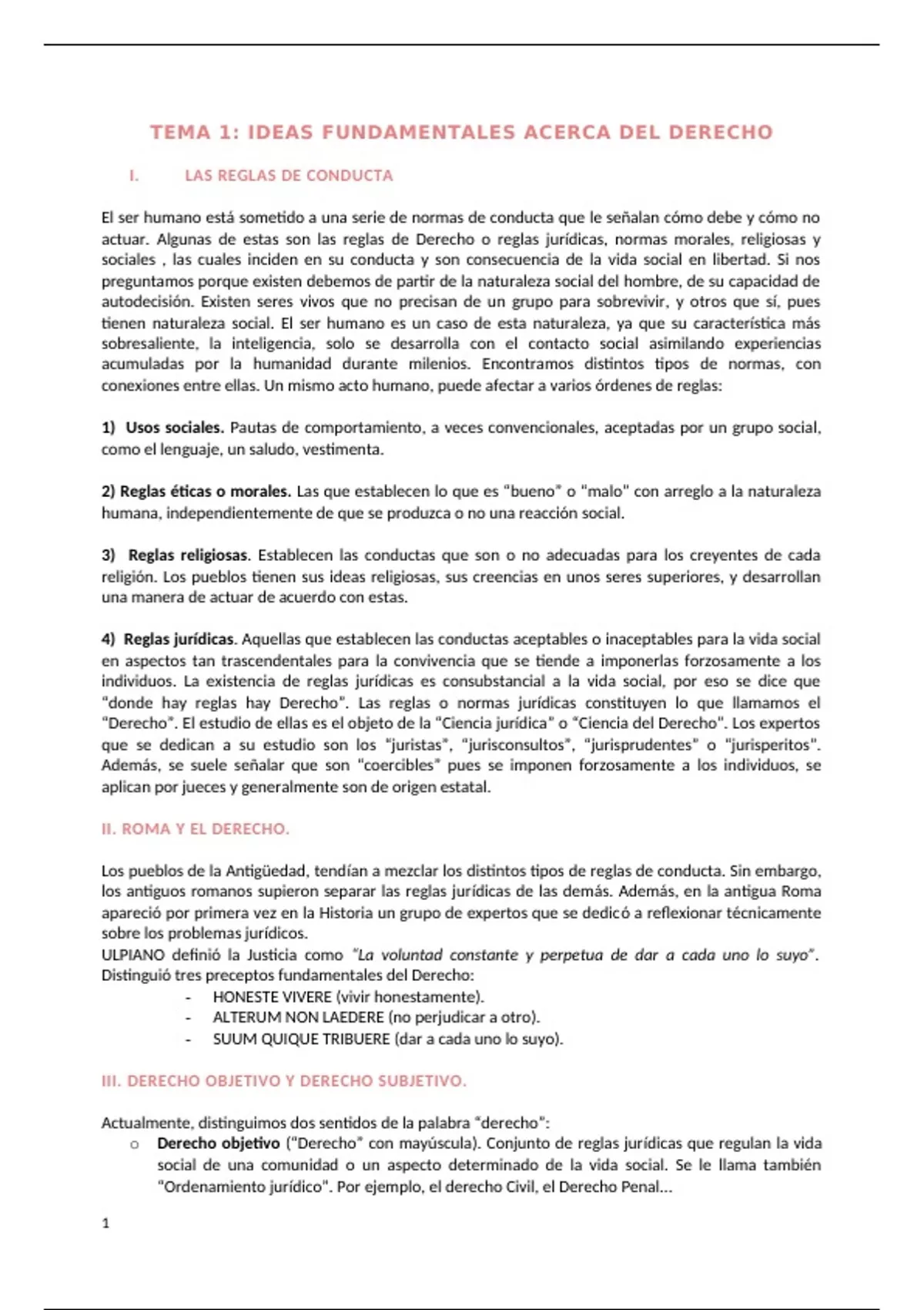 TEMA 1: IDEAS FUNDAMENTALES ACERCA DEL DERECHO