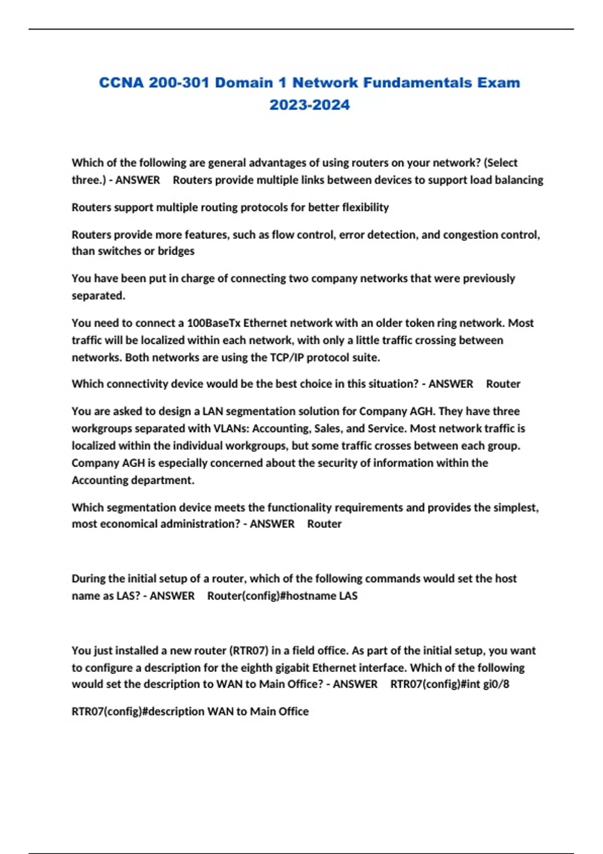 CCNA 200-301 Domain 1 Network Fundamentals Exam ...