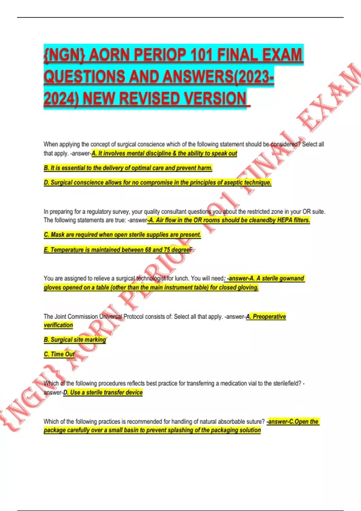[NGN]AORN PERIOP 101 FINAL EXAM QUESTIONS WITH ANSWERS LATEST 2023_2024 NEW REVISED VERSION