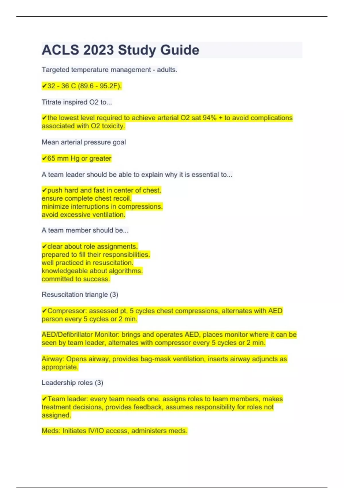 Summary ACLS 2023 Study Guide