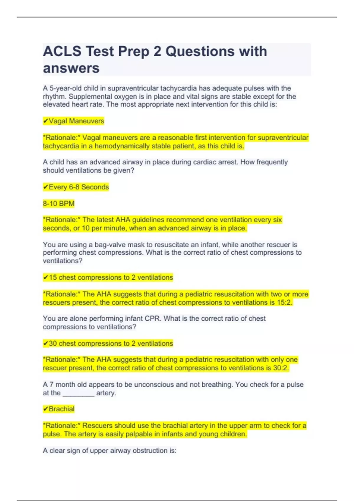 ACLS Test Prep 2 Questions with answers