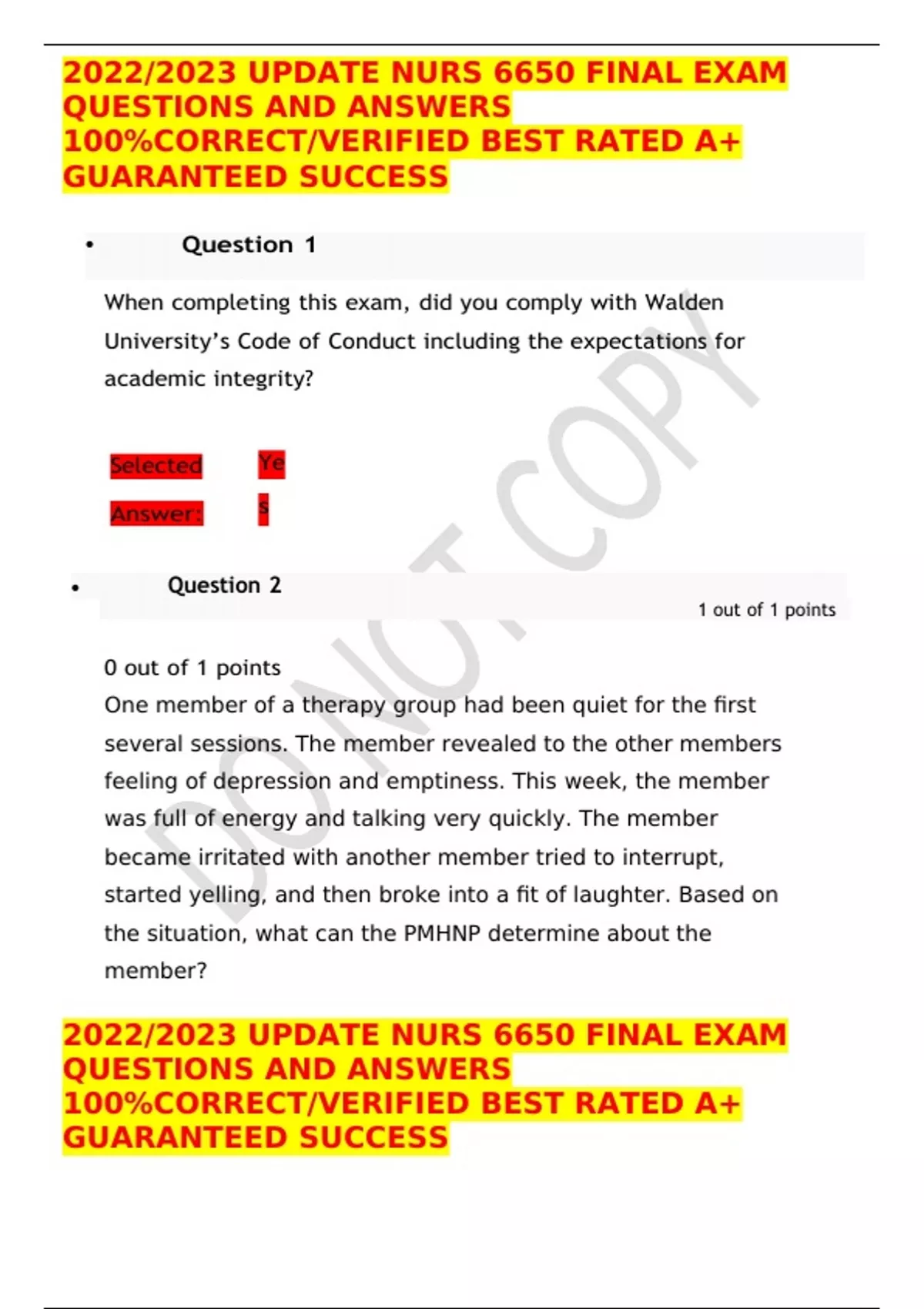 2022/2023 UPDATE NURS 6650 FINAL EXAM QUESTIONS AND ANSWERS 100%CORRECT/VERIFIED BEST RATED A+ GUARANTEED SUCCESS