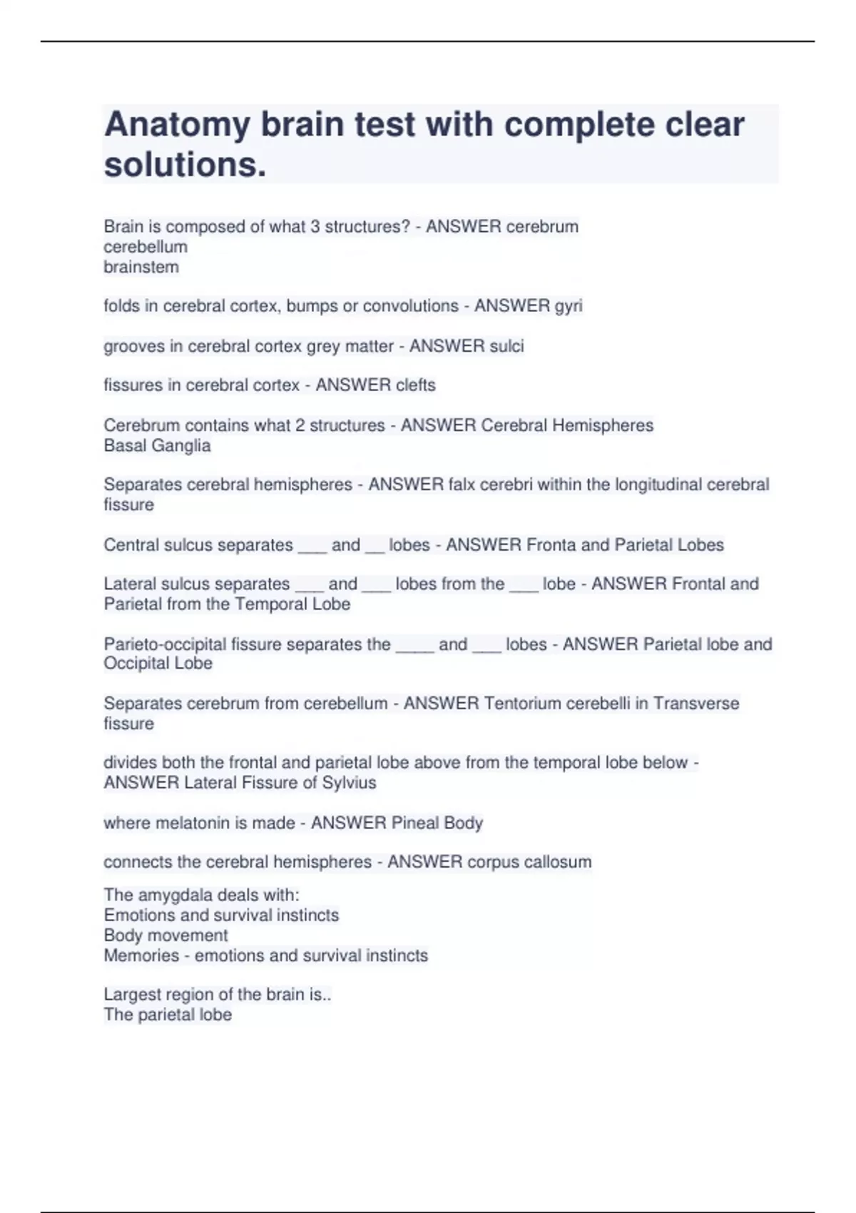 Anatomy brain test with complete clear solutions.