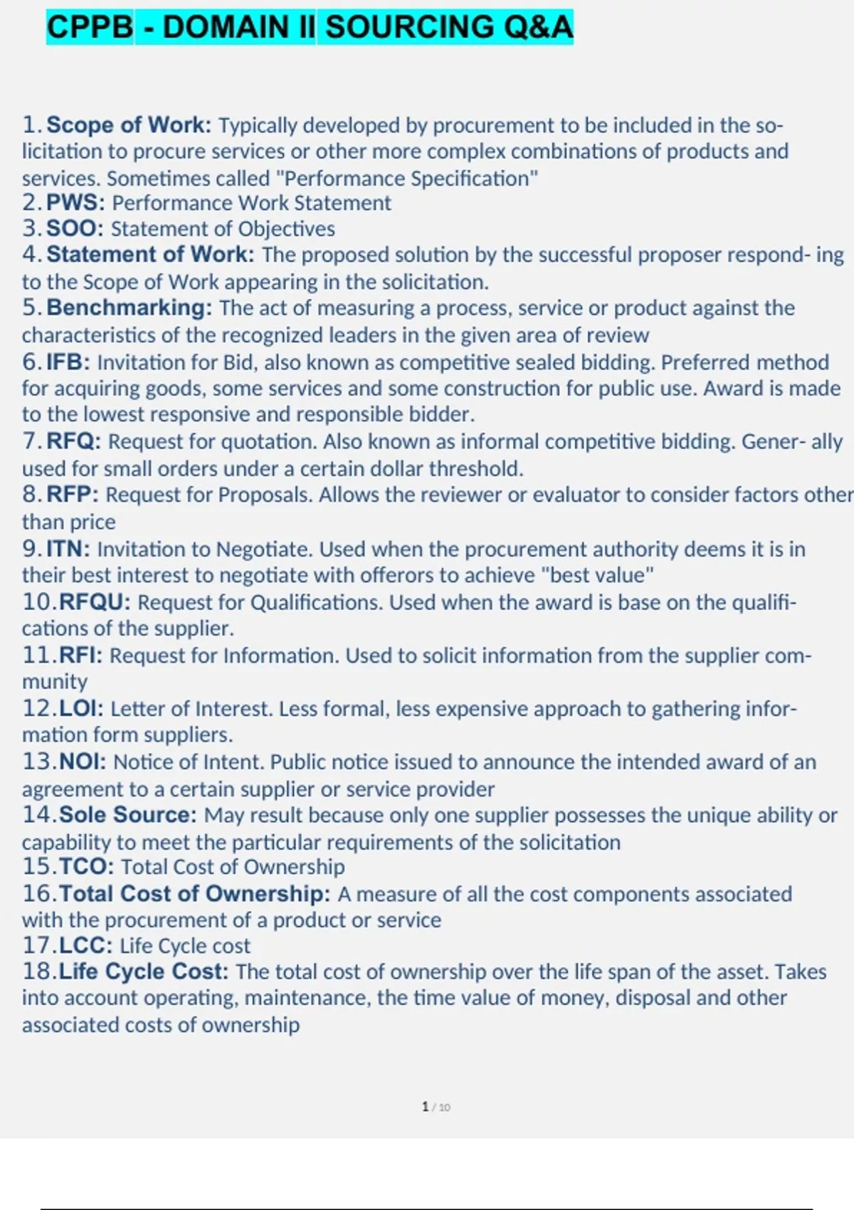 cppb domain ii sourcing exam questions and answ