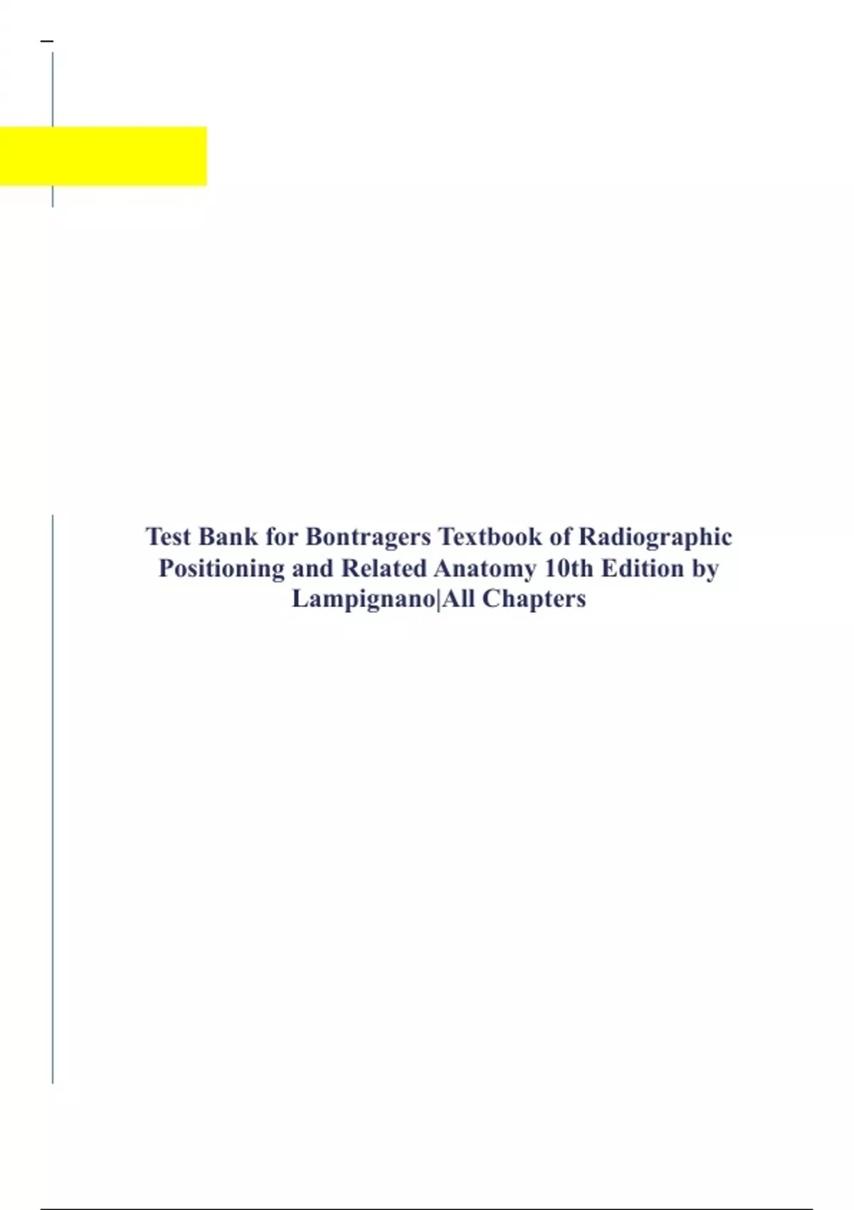 Test Bank for Bontragers Textbook of Radiographic Positioning and Related Anatomy 10th Edition by Lampignano|All Chapters