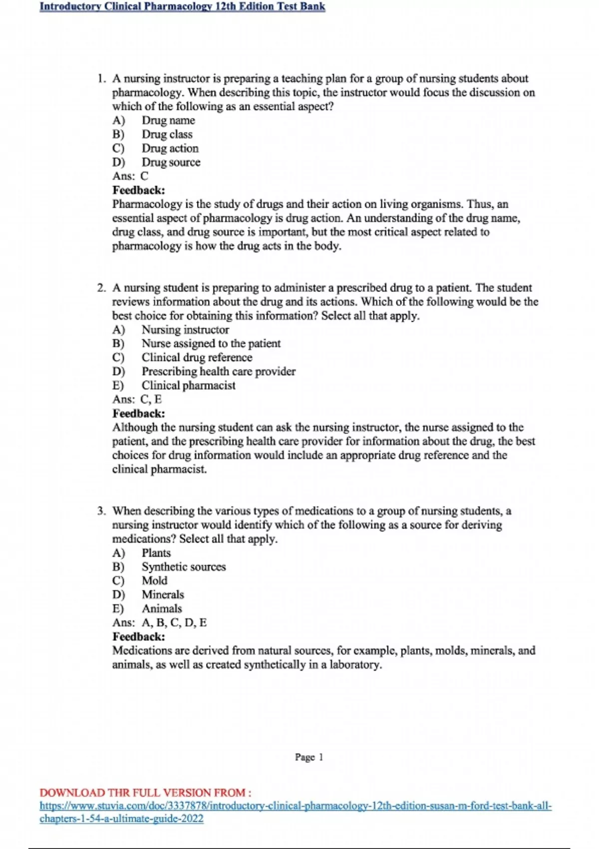 , Introductory Clinical Pharmacology12th Edition Test Bank