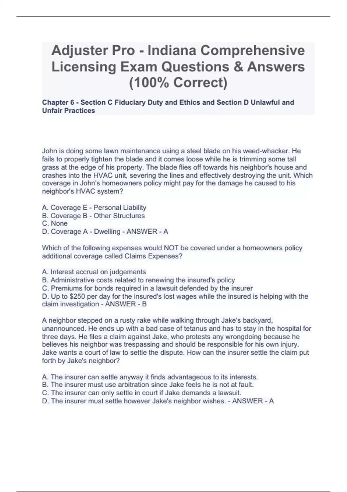 Adjuster Pro - Indiana Comprehensive Licensing Exam Questions & Answers (100% Correct)