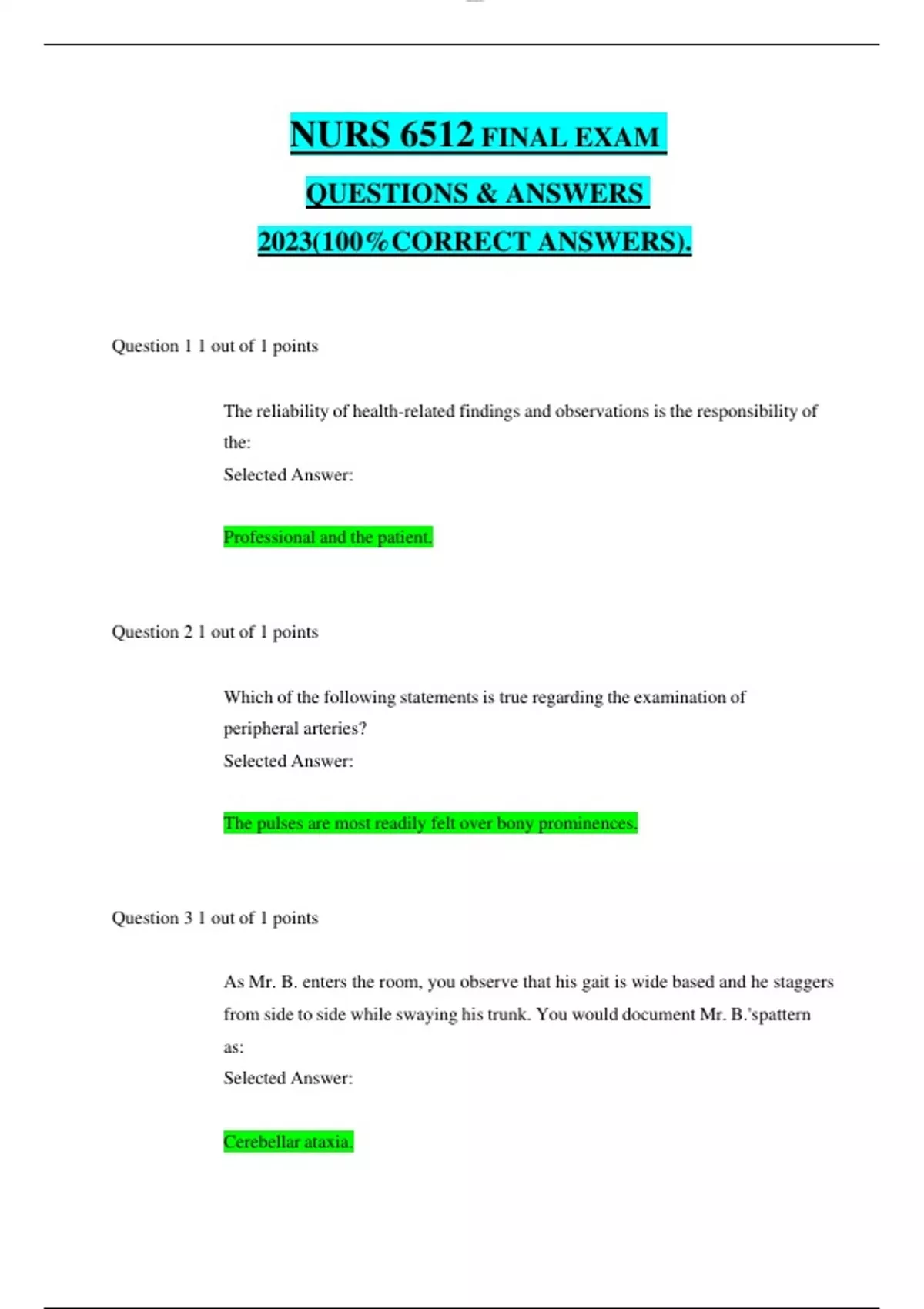NURS 6512 FINAL EXAM QUESTIONS & ANSWERS 2023(100%CORRECT ANSWERS).